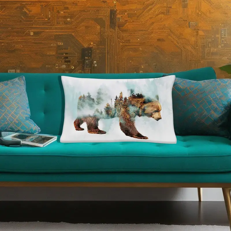 Abstract Forest Bear Print Pillow - Nursery & Loft Decor