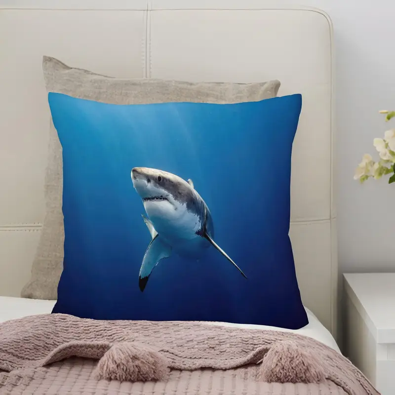 Blue Shark Underwater Print Pillow for Modern Farmhouse Decor