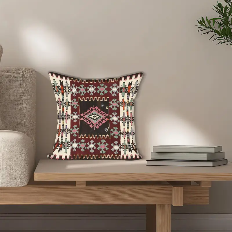 Anatolian Kilim Printed Pillow, Geometric Home Decor Accent