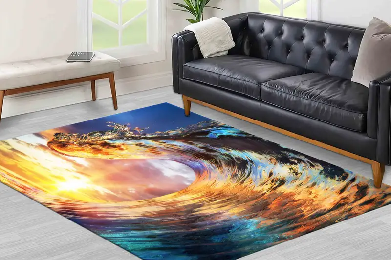 Sunset Crest Wave Print Rug: Coastal Serenity in Every Thread
