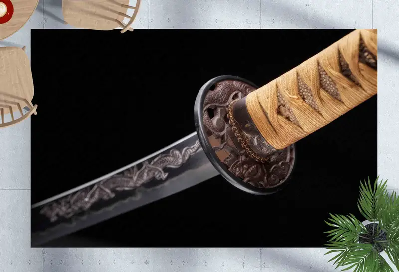 Katana Blade Ornament Modern Printed Rug, Samurai Sword Design