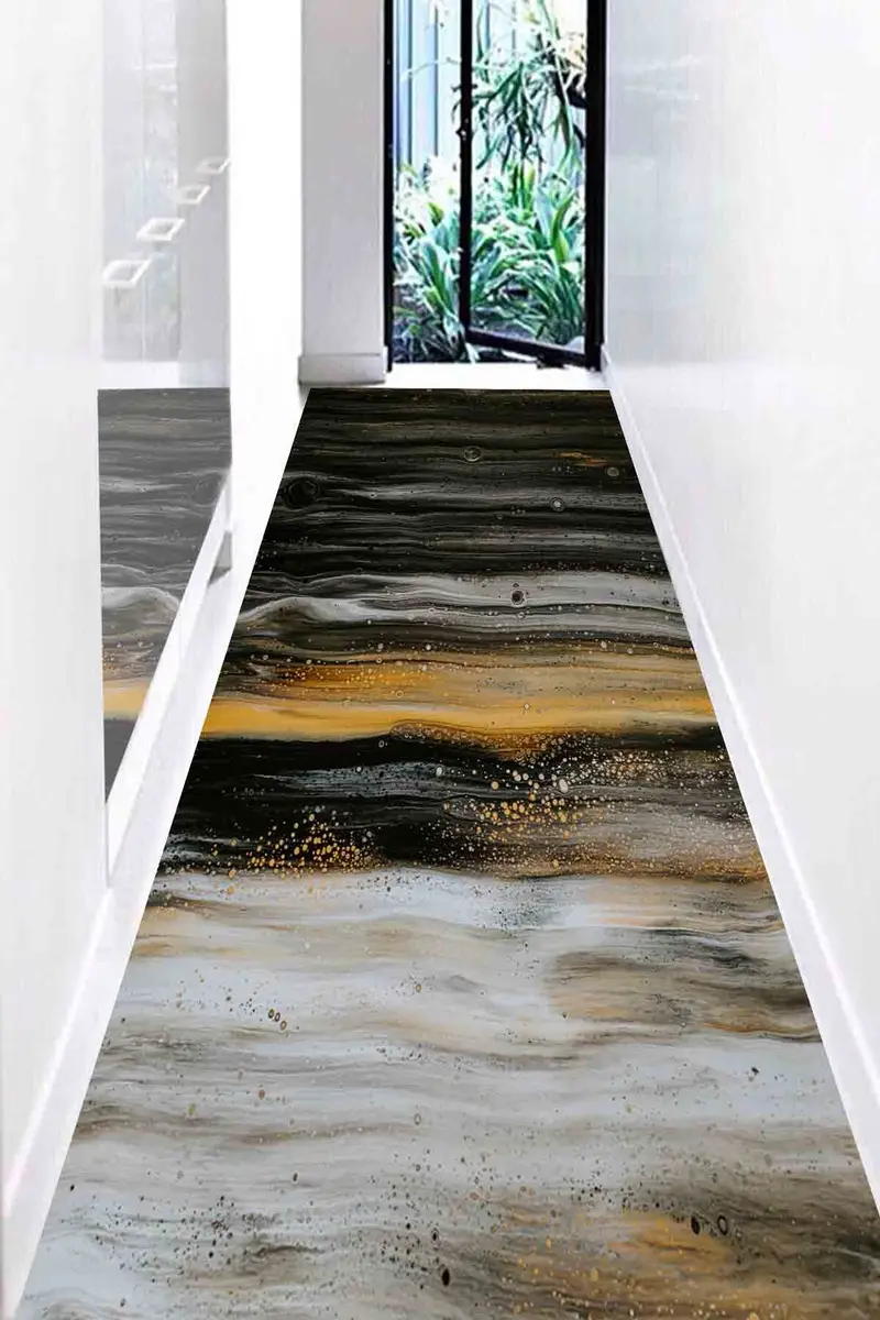 Contemporary Black Abstract Modern Printed Rug with Shimmery Gold