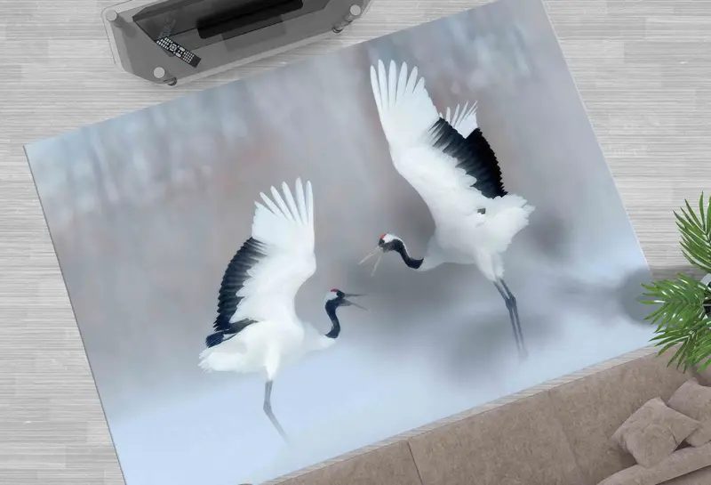 Dancing Birds Printed Rug: Cranes & Wildlife Animal Design