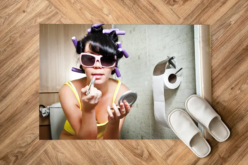 Contemporary Chic Printed Rug: Modern Bathroom Elegance