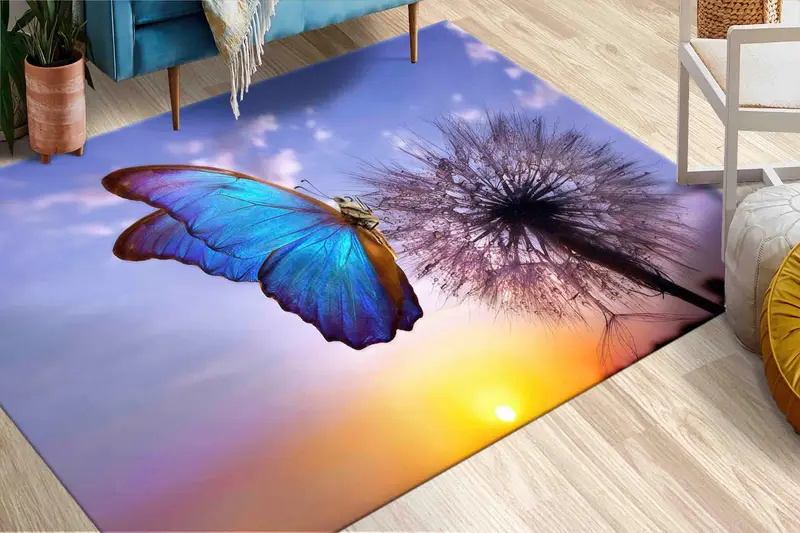 Rainbow Butterfly Printed Rug: Vibrant Nature-Inspired Decor
