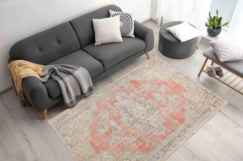 Red Medallion Printed Rug - Vintage Style Oushak Antique Design