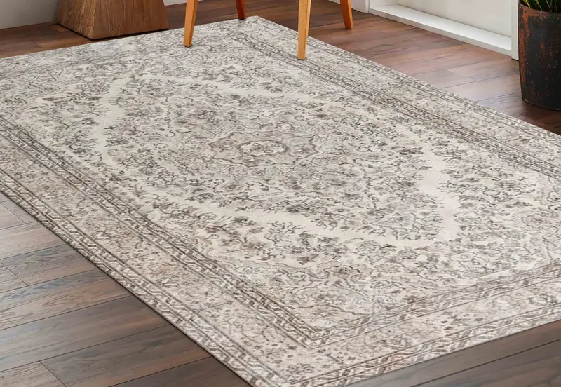 Gray Floral Medallion Printed Rug: Vintage Design for Modern Spaces