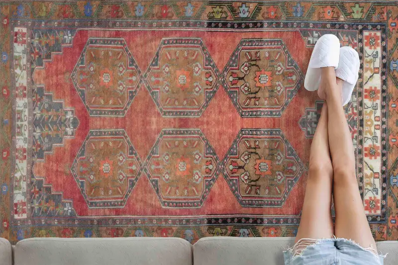 Brown & Red Geometric Aztec Print Vintage Rug, Modern Design