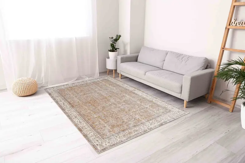 Vintage Floral Oushak Printed Rug: Soft Tones, Farmhouse Charm
