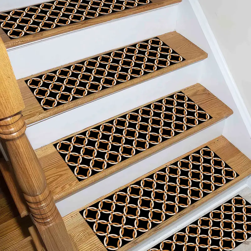 Beige Navajo Kilim Step Rug, Printed Ethnic Design for Modern Homes