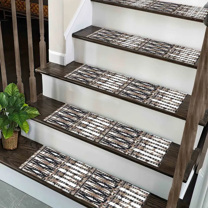 Brown & Navy Kilim Printed Rug: Boho Geometric Step Rug