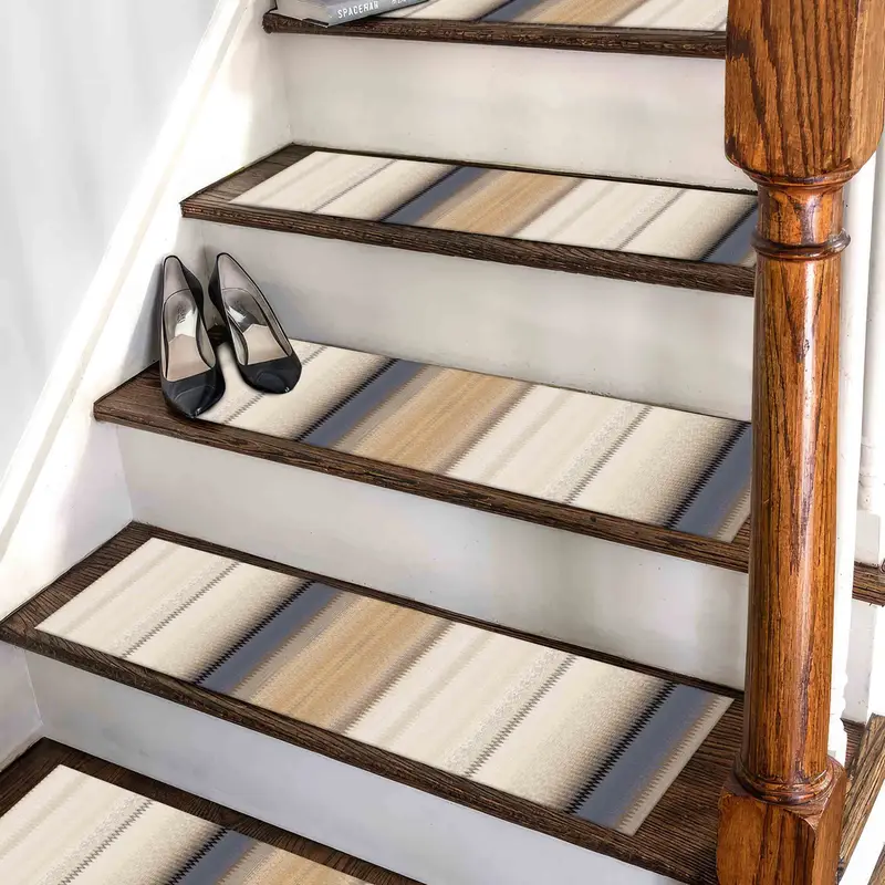 Beige & Blue Kilim Design Printed Step Rug, Boho Chic Home
