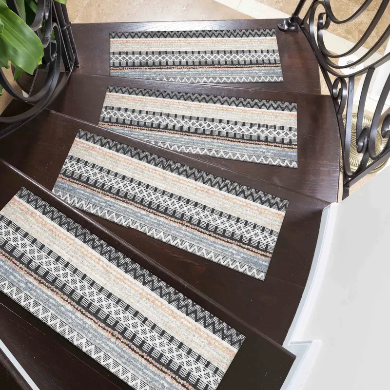 Striped Ethnic Printed Rug: Step Rug in Boho Navajo Design
