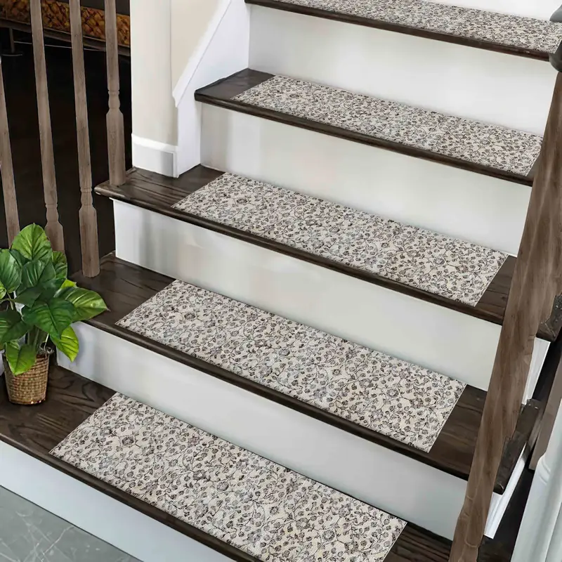 Beige Ethnic Printed Rug: Bohemian Navajo Kilim Design Step Rug