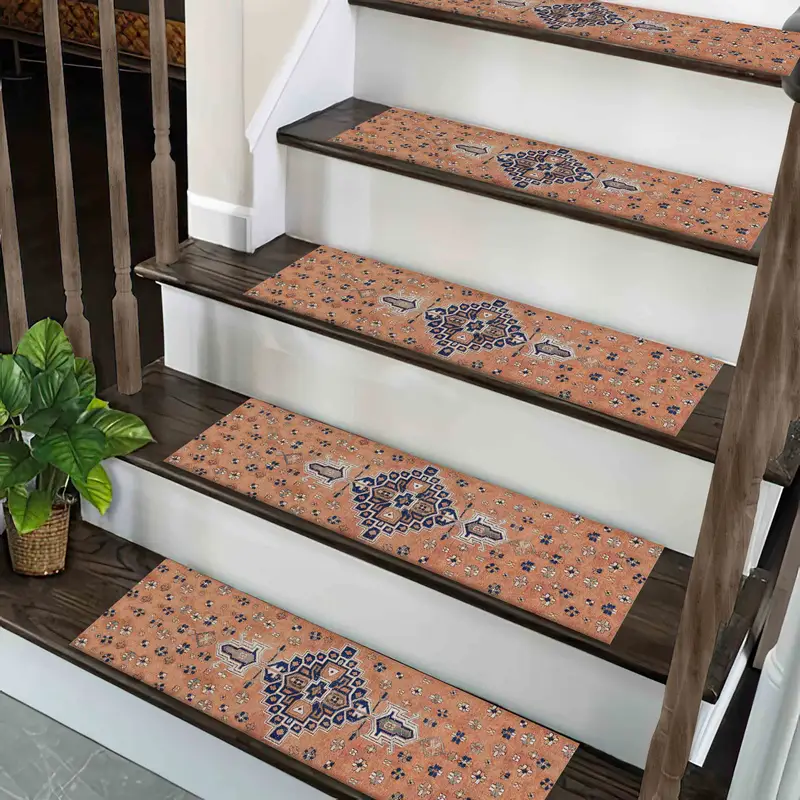Orange Medallion Step Rug: Bohemian Printed Rug with Ethnic Pattern