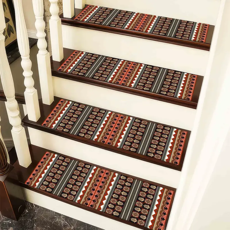 Aztec Ethnic Pattern Printed Step Rug, Bohemian Kilim Design
