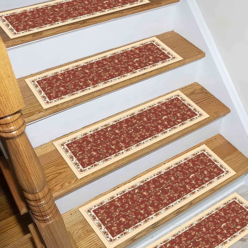 Red Flower Printed Rug: Farmhouse Bohemian Ethnic Step Rug