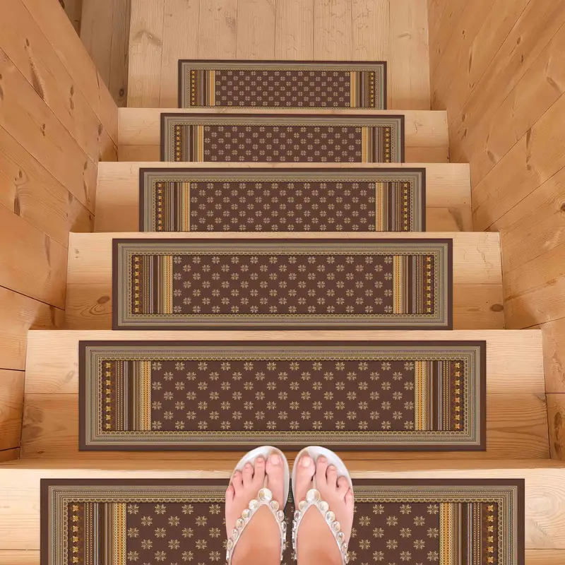 Brown & Yellow Ethnic Floral Printed Rug - Step Rug