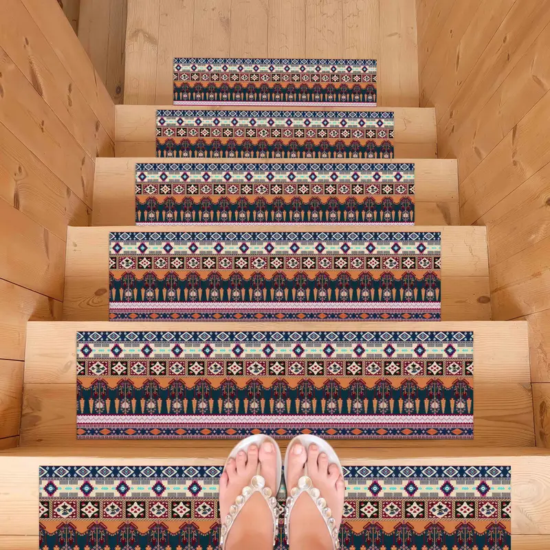 Kilim Design Printed Rug: Step Rug with Aztec Geometric Pattern