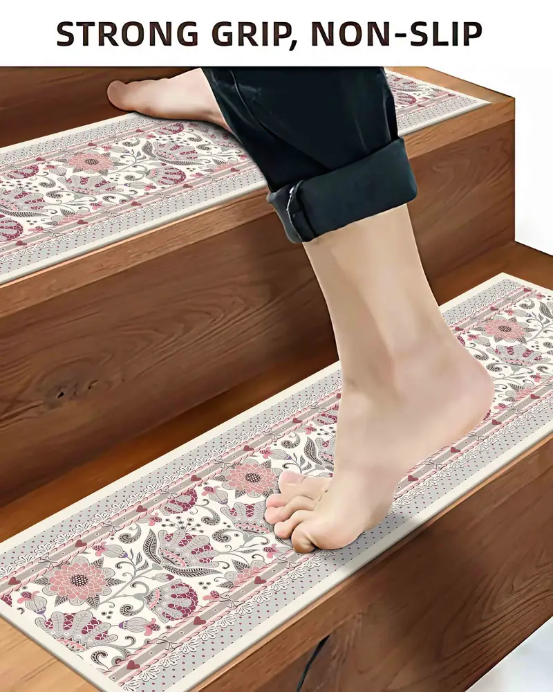 Pink Flower Kilim Step Rug, Farmhouse Boho Printed Rug