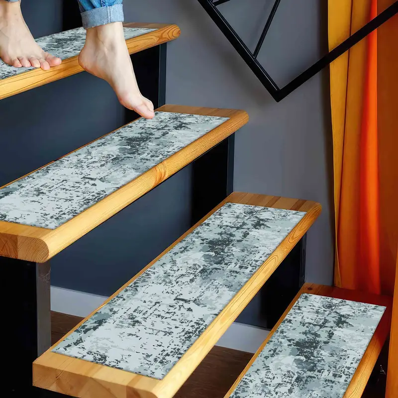 Light Blue Abstract Printed Rug: Modern Step Rug