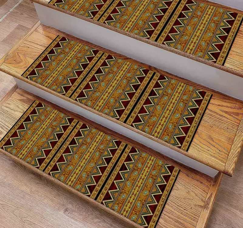 Yellow Kilim Design Printed Rug: Step Rug with Ethnic Patterns