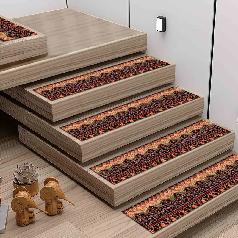 Geometric Pattern Printed Rug: Boho Kilim Design Step Rug