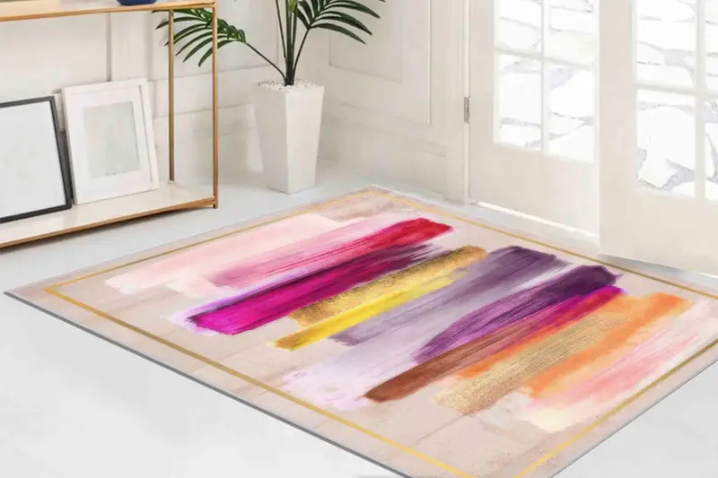 Gold Abstract Modern Printed Rug, Vibrant Colorful Design
