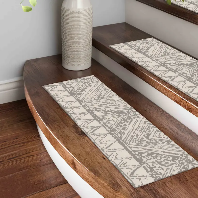 Gray Ethnic Kilim Printed Rug: Step Rug with Geometric Patterns