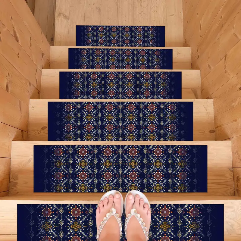 Yellow And Red Flowers Printed Rug: Ethnic Kilim Step Rug