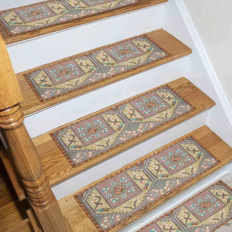 Floral Kilim Printed Step Rug, Ethnic Aztec Boho Design