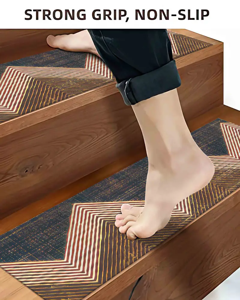 Navy Blue & Orange Printed Rug: Modern Aztec Step Rug