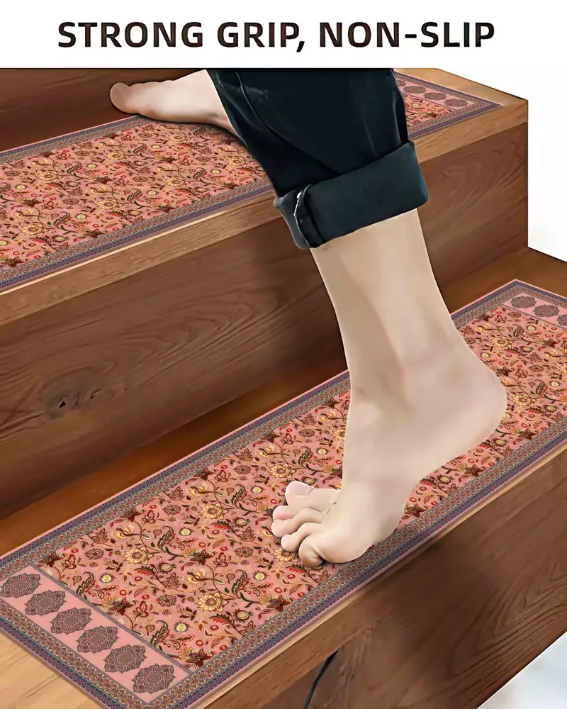 Kilim Design Printed Rug with Pink and Yellow Flowers