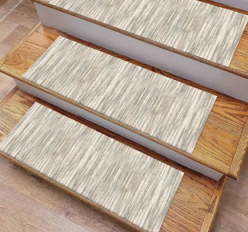 Beige Striped Printed Rug: Ethnic Kilim Design Boho Step Rug