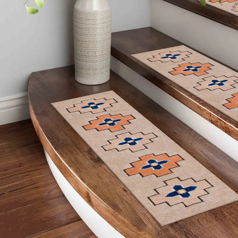 Geometric Beige & Orange Printed Rug: Ethnic Kilim Design