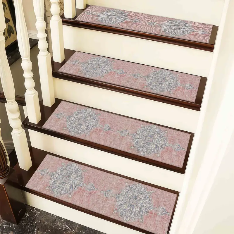 Red Ethnic Pattern Printed Rug: Step Rug, Kilim Design, Boho Chic