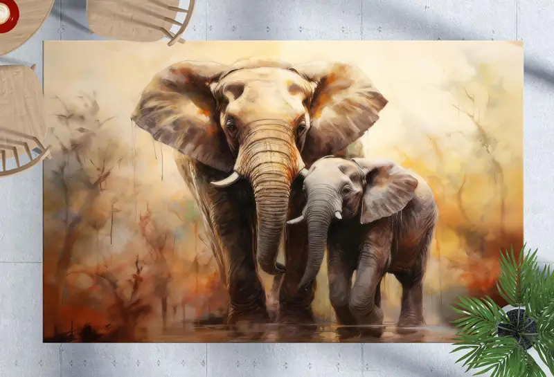 Majestic Elephant Printed Rug: Modern Wild Animal Decor