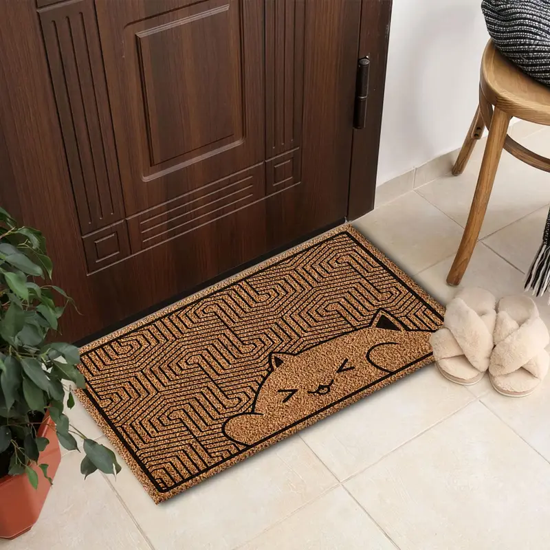 Honeycomb Design Printed Rug: Cute Cat Coir Door Mat