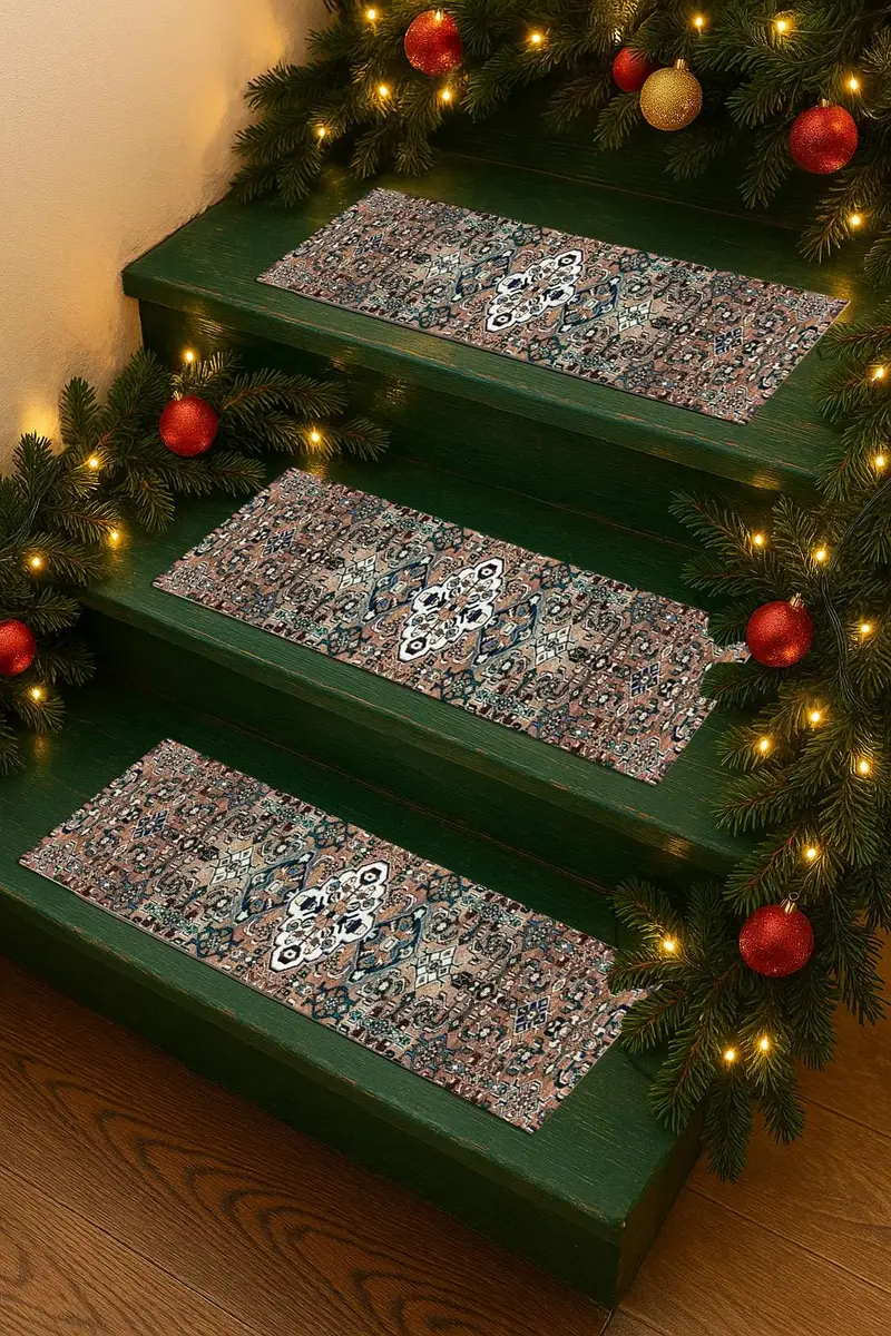 Brown & Green Vintage Pattern Printed Step Rug for Home