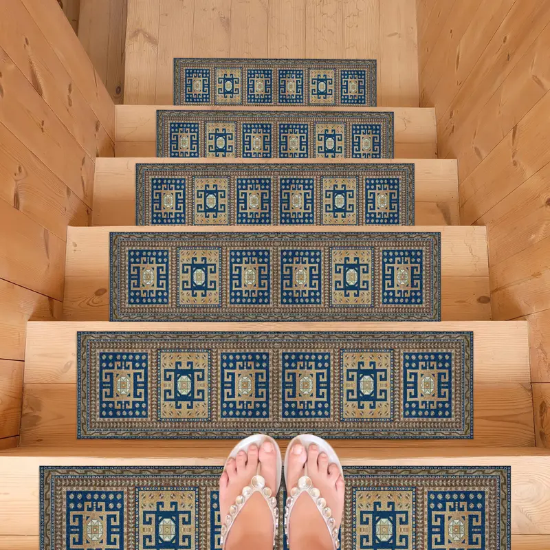 Ethnic Pattern Printed Rug: Modern Step Rug with Geometric Design