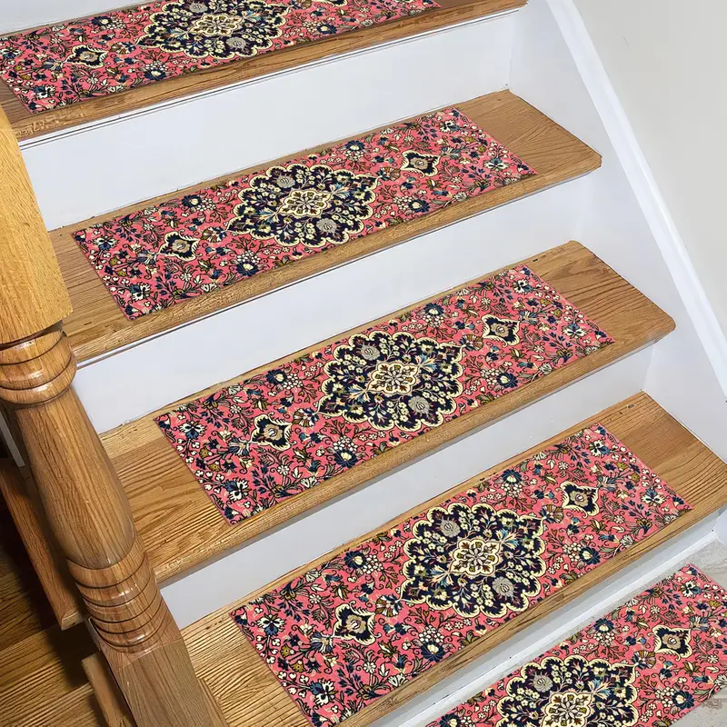 Red & Blue Turkish Vintage Style Printed Step Rug