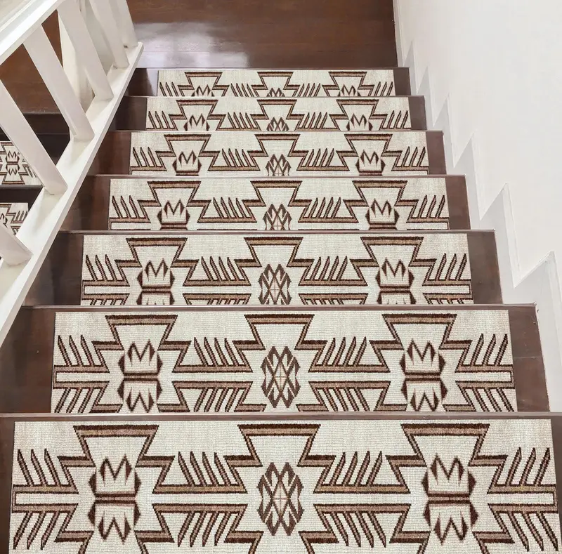 Geometric Pattern Beige Brown Vintage Step Printed Rug