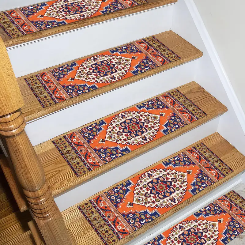 Red & Orange Turkish Vintage Step Rug, Printed Design, Vibrant Pattern