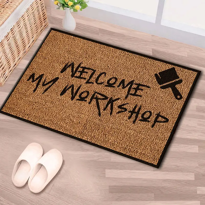 Home Gift: Printed Coir Door Mat - Welcome My Workshop