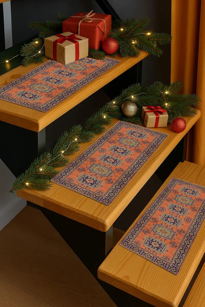 Turkish Orange Geometric Floral Printed Rug - Step Rug Design
