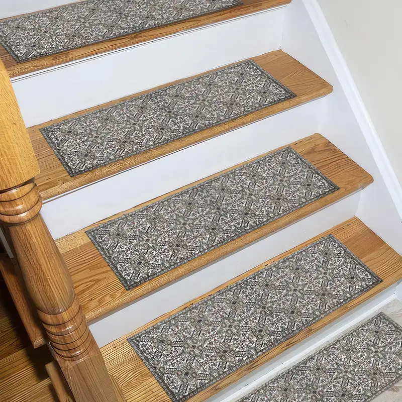 Geometric Step Rug, Printed Turkish Rug with Modern Floral Pattern