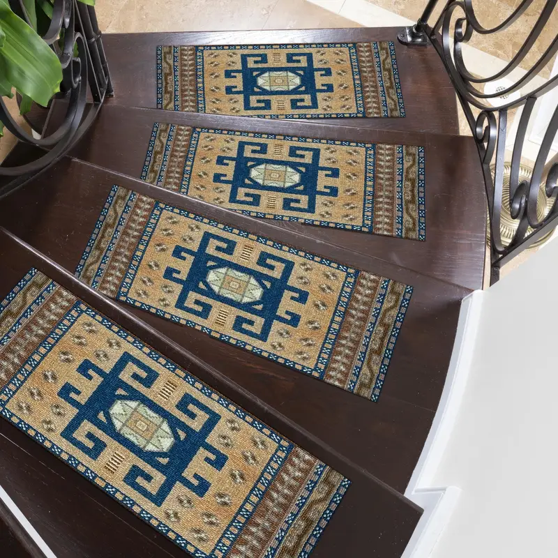 Blue Medallion Ethnic Design Printed Step Rug - Modern Elegance