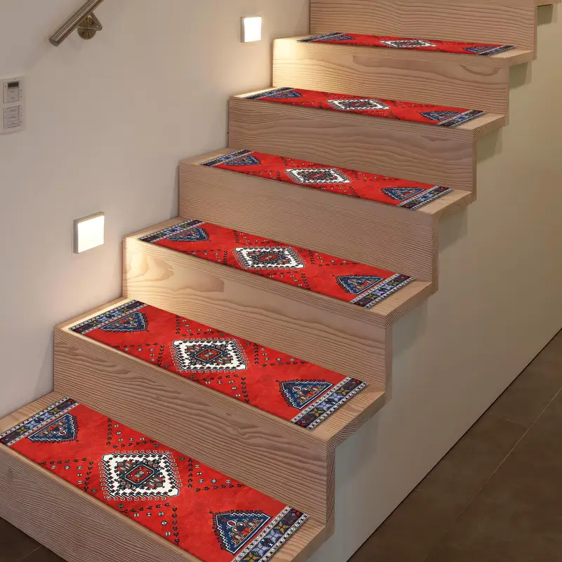 Geometric Ethnic Design Printed Step Rug with Navajo Medallion Pattern