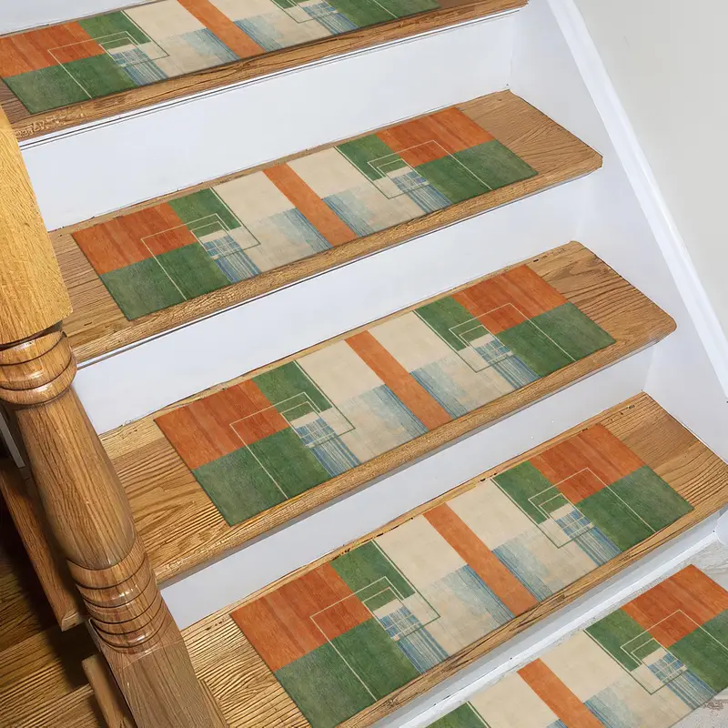 Geometric Pattern Step Rug in Orange, Green, Blue - Printed Design
