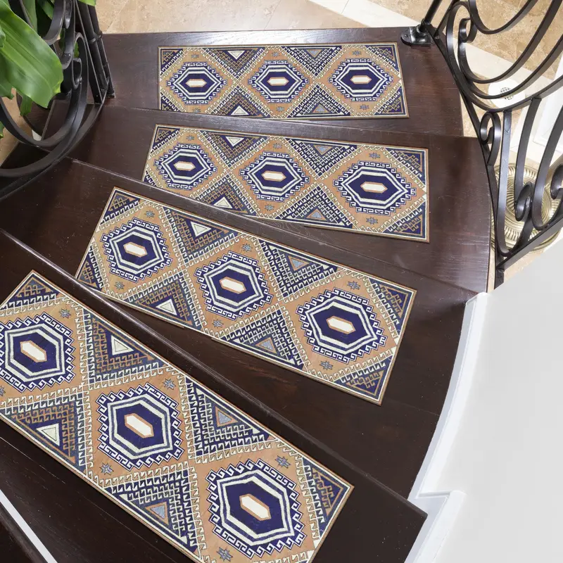 Geometric Design Beige Printed Rug: Ethnic Pattern Step Rug